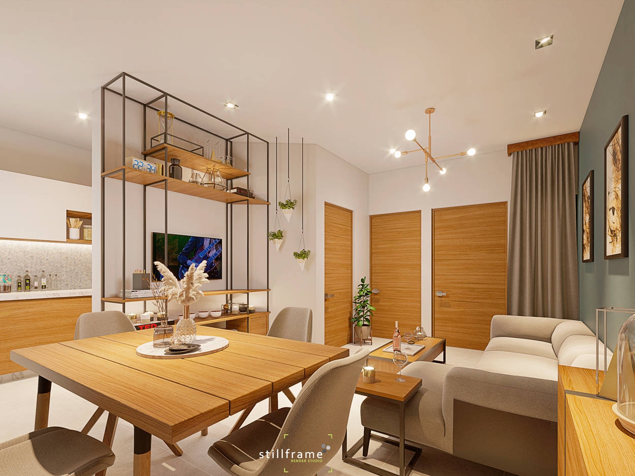 Es una imagen virtual creada a través de un programa que nos ayuda a entender el interior de un espacio, que cosas podemos identificar con este Render, mobiliario, decoración, iluminación natural, artificial. Tipo de telas , cortinas, muchos de estos aspectos sirven para entender un Render interior, a diferencia del Render exterior, un Render interior demora tiempo en el proceso de creación, ya que la gente va variando, todo lo mencionado al momento de ser creado, los renders interiores más solicitados por inmobiliarias son: Render de Recamara principal esto ayuda a una pareja a identificarse en el espacio en que van a descansar, Render interior de la cocina, este ayuda a una mamá a saber las dimensiones de su cocina y si va a dar todo lo que ya tiene en su actual casa , y crea un sentimiento familiar ya que ahí es el punto de reunión.
